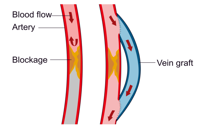 Coronary artery bypass grafting (CABG) is a procedure used to treat people diagnosed with coronary heart disease. During CABG, surgeons use a piece of blood vessel taken from the leg, arm or chest to bypass a narrowed section of one or more coronary arteries supplying the heart. Most patients undergoing CABG have several narrowed areas in their coronary arteries, requiring more than one piece of ‘bypass’ vessel.