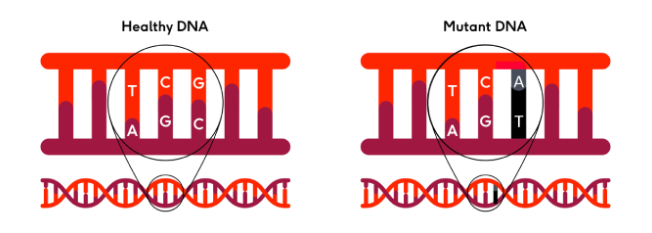 Mutations are like spelling mistakes. There might be an A instead of a G, changing the meaning of the words in the instruction manual.